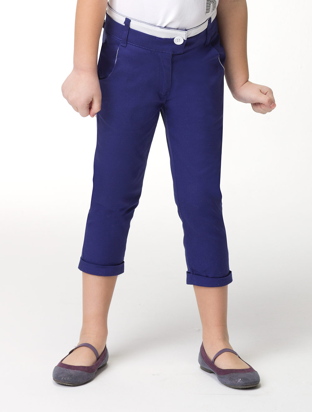 Описание: Брюки из хлопка с добавлением эластана. Пояс декорирован тканью контрастного цвета.