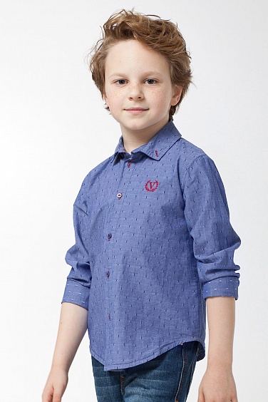 Рубашка с вышивкой контрастного цвета на груди. Нитки для пришивания пуговиц и для обработки петель - контрастного цвета.