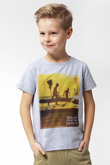 Футболка из эластичного хлопкового трикотажа. Перед декорирован фотопринтом.