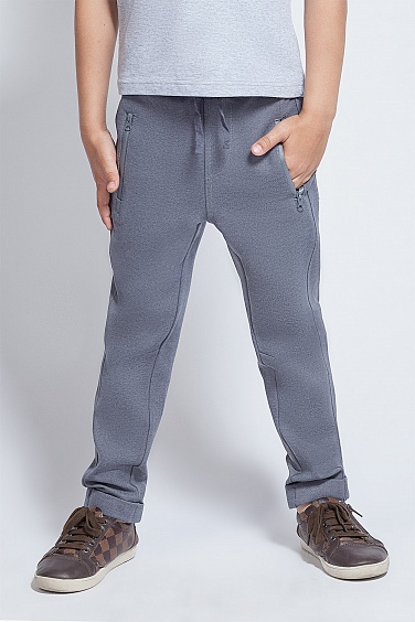 Брюки для мальчика из плотного трикотажа. Пояс выполнен из рибаны, внутри резинка. Карманы на молнии.