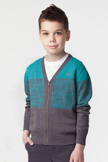 Жакет для мальчика из хлопковой пряжи, декорированный вышивкой на груди.