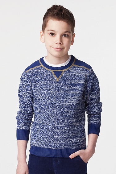 Джемпер для мальчика меланжевой вязки. изделие декорировано отделочной строчкой контрастного цвета.