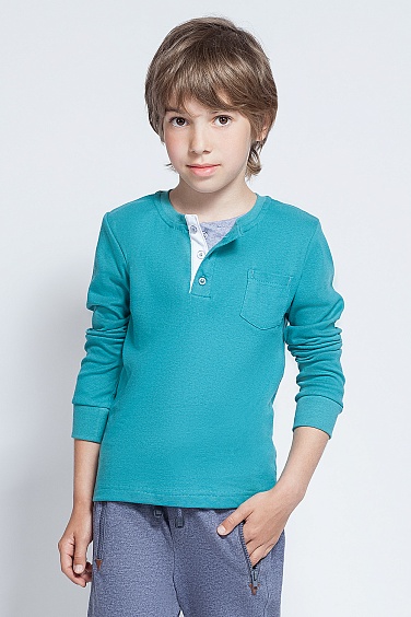 Футболка из хлопкового трикотажа с застежкой на пуговицы и деталями контрастного цвета.