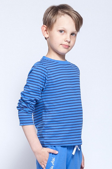 Футболка из полосатого хлопкового трикотажа с контрастной отделочной строчкой по плечам и горловине спинки.