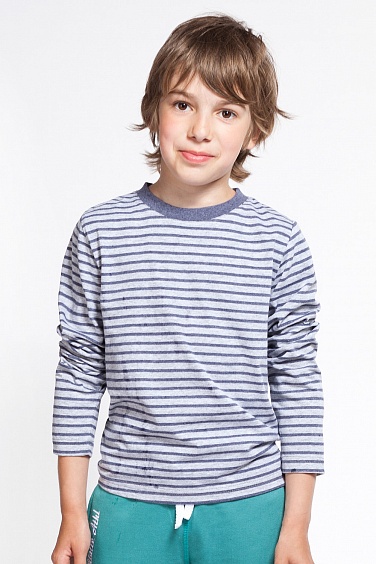 Футболка из полосатого хлопкового трикотажа с контрастной отделочной строчкой по плечам и горловине спинки.