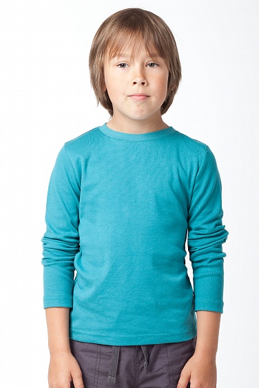 Футболка из хлопкового трикотажа с контрастной строчкой на плечах и горловине спинки.
