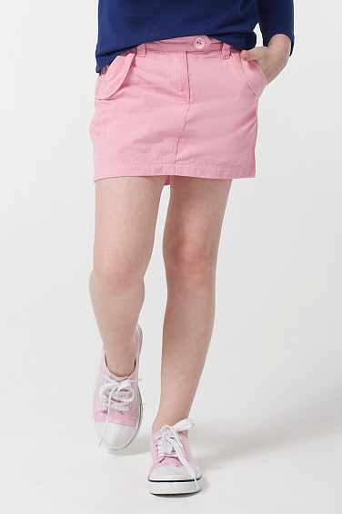 Юбка из плотной хлопковой ткани с эффектом стирки. Отделочные строчки в тон изделия. Спереди застежка на пластиковую пуговицу.