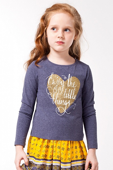 Футболка из тонкого трикотажного полотна, декорированная принтом с блестками.
