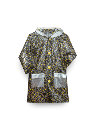 дождевик 100% PVC Дождевик. Модель свободного кроя из непромокаемой ткани, с капюшоном и накладными карманами. леопардовый принт размер L-110/116 - XL-122/128 - XXL- 134/140 (3 р-ра) старая цена - 820 / Новая цена - 300