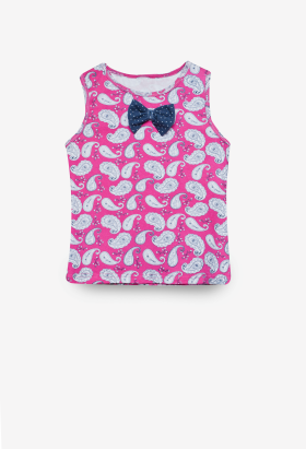майка 95% Cotton 5% spandex Майка. Модель в рисунок пейсли с декоративным бантиком. розовый 110-116-122-128-134-140 (6 р-ров) 580 / Новая цена - 300