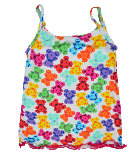 сарафан 80%nylon 20%spandex 190gsm Сарафан. Низ изделия декорирован мелкими рюшами. Принт разноцветные мишки. мишки 92-98-104-110-116-122 (6 р-ров) 650 / Новая цена - 300