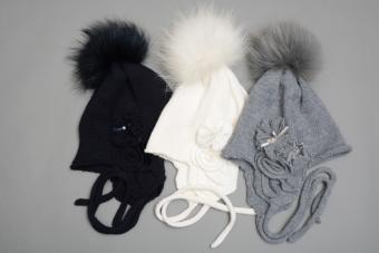 PINETTI IND (FASHION BARILLA) 99110-C шапка (с флисовым подкладом) Шапка на завязках с помпоном из натурального меха. Изделие декорировано цветочными аппликациями. серый /3 штуки в размерном ряду: 92-104-116 / Новая цена - 500