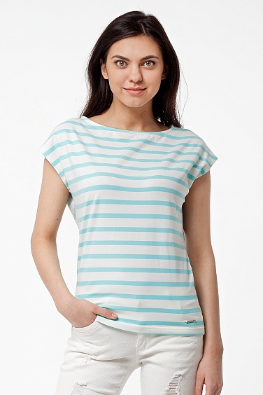 Футболка изготовлена из эластичного трикотажа с добавлением эластана для лучшей формоустойчивости. Базовый покрой с вырезом лодка. Внизу сбоку металлическое лого.
