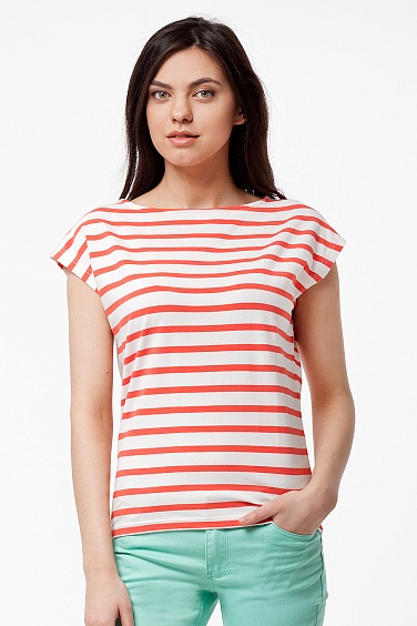 Футболка изготовлена из эластичного трикотажа с добавлением эластана для лучшей формоустойчивости. Базовый покрой с вырезом лодка. Внизу сбоку металлическое лого.