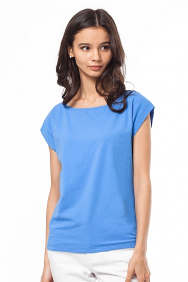 Футболка выполнена из эластичного хлопкового трикотажного полотна. Спущенное плечо. Горловина обработана обтачкой.