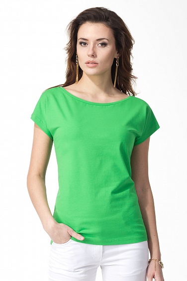 Футболка выполнена из эластичного хлопкового трикотажного полотна. Спущенное плечо. Горловина обработана обтачкой.