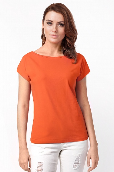 Футболка выполнена из эластичного хлопкового трикотажного полотна. Спущенное плечо. Горловина обработана обтачкой.