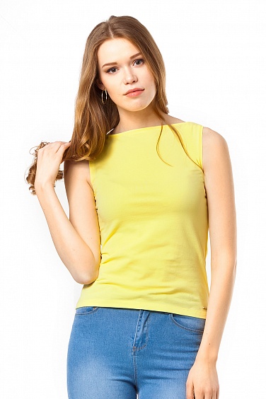 Топ изготовлен из эластичного трикотажа с добавлением эластана для лучшей формоустойчивости. Базовый покрой с вырезом лодка.