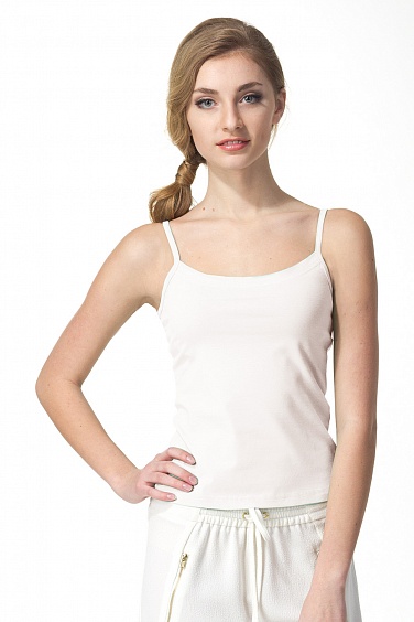 Топ выполнен из трикотажного хлопчатобумажного полотна. По проймам и горловине окантовки. На лямках регуляторы длины.