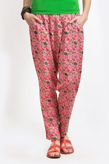 Свободные брюки из штапельной вискозы, заужены к низу. Талия чуть занижена. Пояс притачной. Застежка потайная сбоку на молнию. Впереди - запах, скрывающий передний шов брюк, от правой штанины на левую. Карманы овальные классические. Для покупателей детской одежды будет интересно приобрести похожее брюки для девочки F24.100. Популярный family-look!
