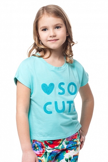 Футболка для девочки из тонкого трикотажа, декорирована вышивкой пайетками спереди. Спинка двуслойная с запахом. Нижний слой из тонкого прозрачного материала, что придает модели легкость и воздушность.
