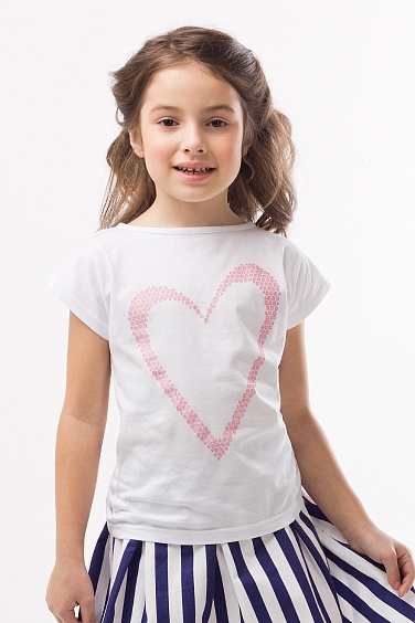 Футболка для девочки из хлопкового полотна, декорирована принтом "сердце".