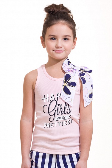 Топ для девочки из эластичного хлопкового полотна. Топ декорирован принтом и крупным бантом на передней части.