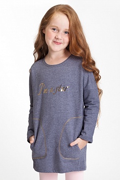 Платье из мягкого футера, декорированное контрастной строчкой и принтом.