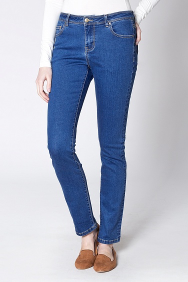 Джинсы базового кроя, прямого силуэта, выполнены из очень эластичного денима, что обеспечивает безупречную посадку на любую фигуру. Классическая стирка без лишних потертостей подходит для создания повседневных и даже классических образов. Задний карман украшен кожаным логотипом, остальная фурнитура актуального золотистого цвета.