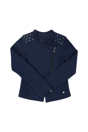 " ED87-E жакет 95% хлопок 5% спандекс Толстовка. Модель с ассиметричной молнией и декоративными клепками на плечах. Синий 1900 руб / Новая цена, с учетом скидки 950 руб. / Размер - 130