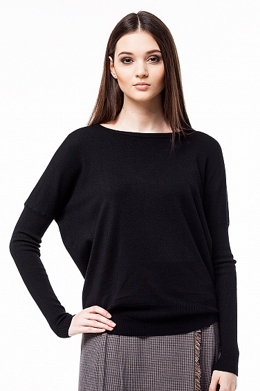 Тонкая вязка. Свободный силуэт верха, с плотным прилеганием по низу и узкие эластичные рукава, связанные тонкой резинкой 1*1
