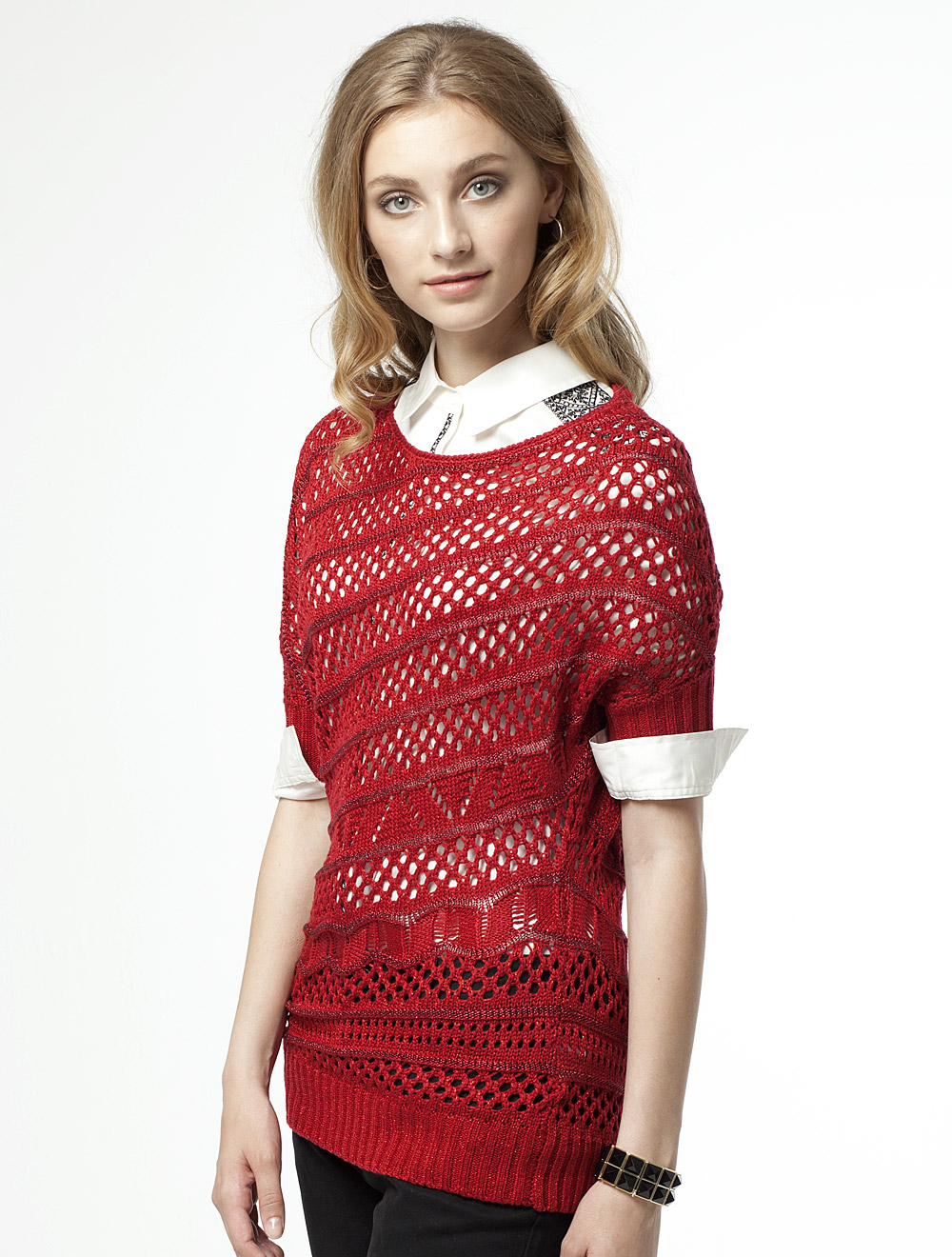 Описание: Резная вязка средней плотности из атласных нитей с элементами черного мягкого люрекса. Ассиметричная форма кроя позволяет формировать эффектные фалды от талии к бедрам. Подходит для многослойных дневных образов или самостоятельно - как вечерний вариант.