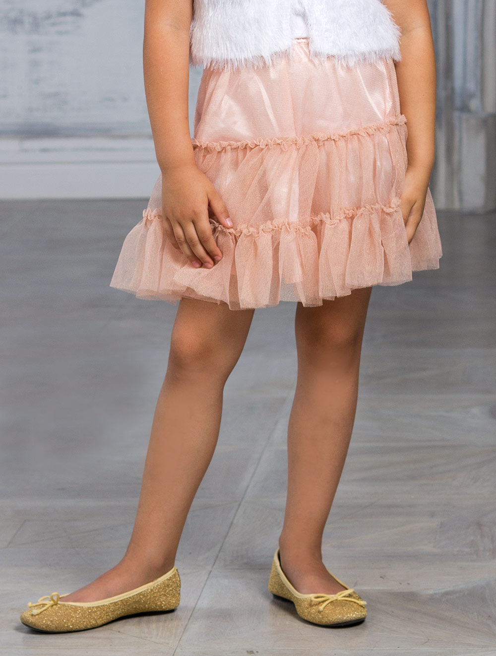 Описание: Двухслойная юбка. Верхний слой, декорированный оборками, выполнен из мягкой сетки. Нижний слой из атласного материала.