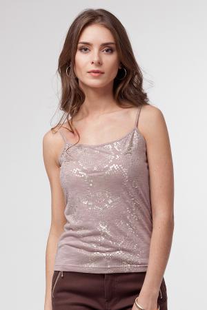 Выполнен из тонкого эластичного фактурного трикотажа. Бретели с регуляторами длинны. Принт, имитирующий рисунок кожи питона, нанесен мягкой фольгой.
