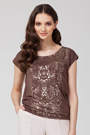 Тонкий фактурный трикотаж. Цельнокроеный рукав. Принт, имитирующий рисунок кожи питона, нанесен мягкой фольгой.