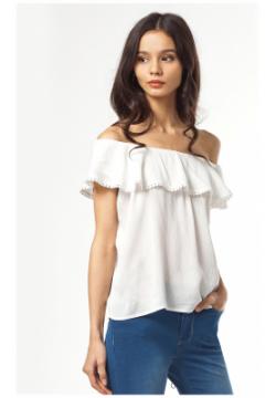 Топ выполнен из тонкой вискозной ткани. Верх украшен отлетным воланом с красивой драпировкой.