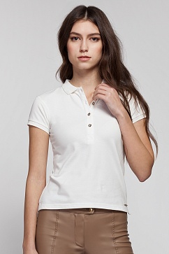 Рубашка- поло классического покроя по фигуре. Спереди планка с золотистыми пуговицами, воротник рубашечный из хлопковой рибаны, так же, как и манжеты на рукавах. Спинка длиннее, чем перед, по бокам внизу небольшие разрезы. Снизу изделия нашит металлический логотип.