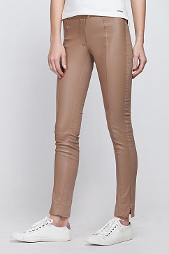 Брюки из двух видов ткани: перед из очень эластичной искусственной кожи, задняя часть из сатинового плотного хлопка с эластаном. Декоративные строчки по центру ноги шириной около 7 мм.