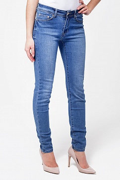 Джинсы классического силуэта выполнены из очень эластичного денима. Плотное прилегание сверху и немного свободнее от колена. Фурнитура золотистого цвета.