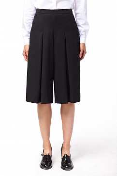 Ультрамодные брюки-кюлоты с широкими разлетающимися штанинами. Спереди на штанинах глубокие встречные складки. Застежка сбоку на потайную молнию.