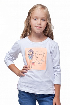 Футболка из хлопкового полотна. Спереди декоративный принт со стразой и глиттером. Внизу боковых швов разрезы.