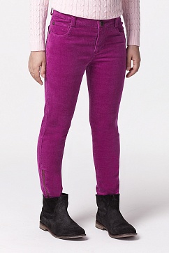 Брюки из эластичного вельвета с декоративными молниями по низу изделия.