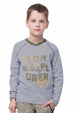 Футболка из хлопкового трикотажного полотна, декорированная принтом и нашивкой по низу изделия.