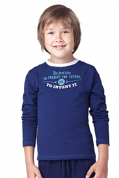 Футболка их хлопкового трикотажа с принтом на груди. Горловина с открытым срезом контрастного цвета.