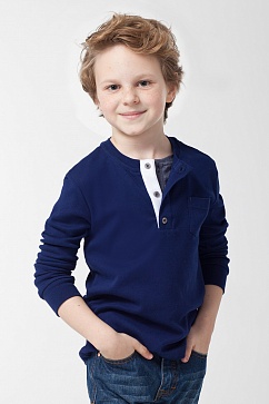 Футболка из хлопкового трикотажа с застежкой на пуговицы и деталями контрастного цвета.