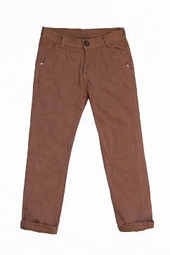 Брюки из хлопка средней плотности с эффектом стирки. Застежка на пуговицу и гульфик на молнии. На заднем кармане нашивка из искусственной кожи с логотипом.