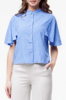 Блузка изготовлена из штапельного вискозного полотна с принтованным рисунком. Рукава выполнены в виде удлиненного крыла. Пластиковые пуговицы.