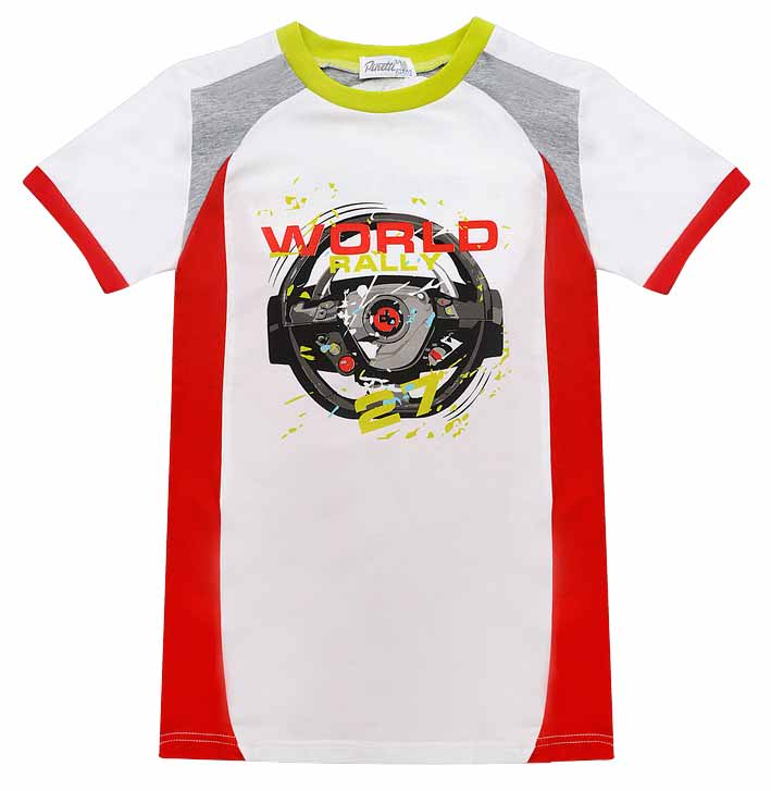" 57302-A Футболка 95%хлопок5%эластан Футболка с короткими рукавами и контрастными принтами. Белый/Красный Цена: 520,00 руб. / размер: