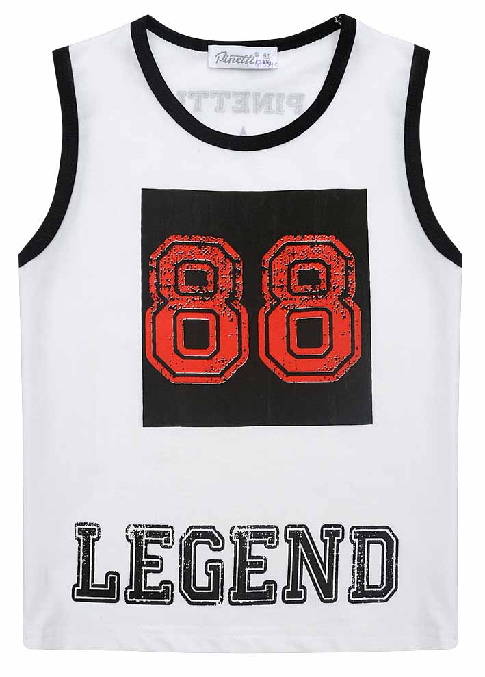 " 57334-C Майка 95%хлопок5%эластан Майка трикотажная с контрастным принтом на полочке и фирменным логотиплм"Pinetti на спинке. Белый Цена: 360,00 руб. / размер: