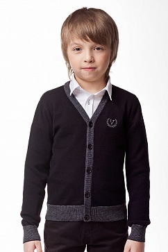 Вязаный жакет из мягкой пряжи. Планка, низ изделия и манжеты рукавов выполнены из меланжевой пряжи.